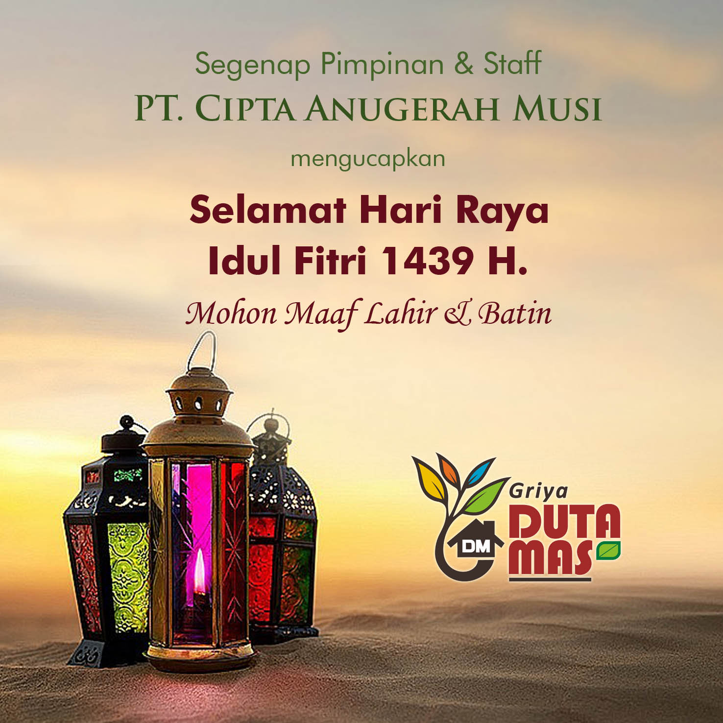 Segenap Pimpinan & Staff PT. Cipta Anugerah Musi mengucapkan Selamat Hari Raya Idul Fitri 1439H. Mohon Maaf Lahir & Batin....Selengkapnya