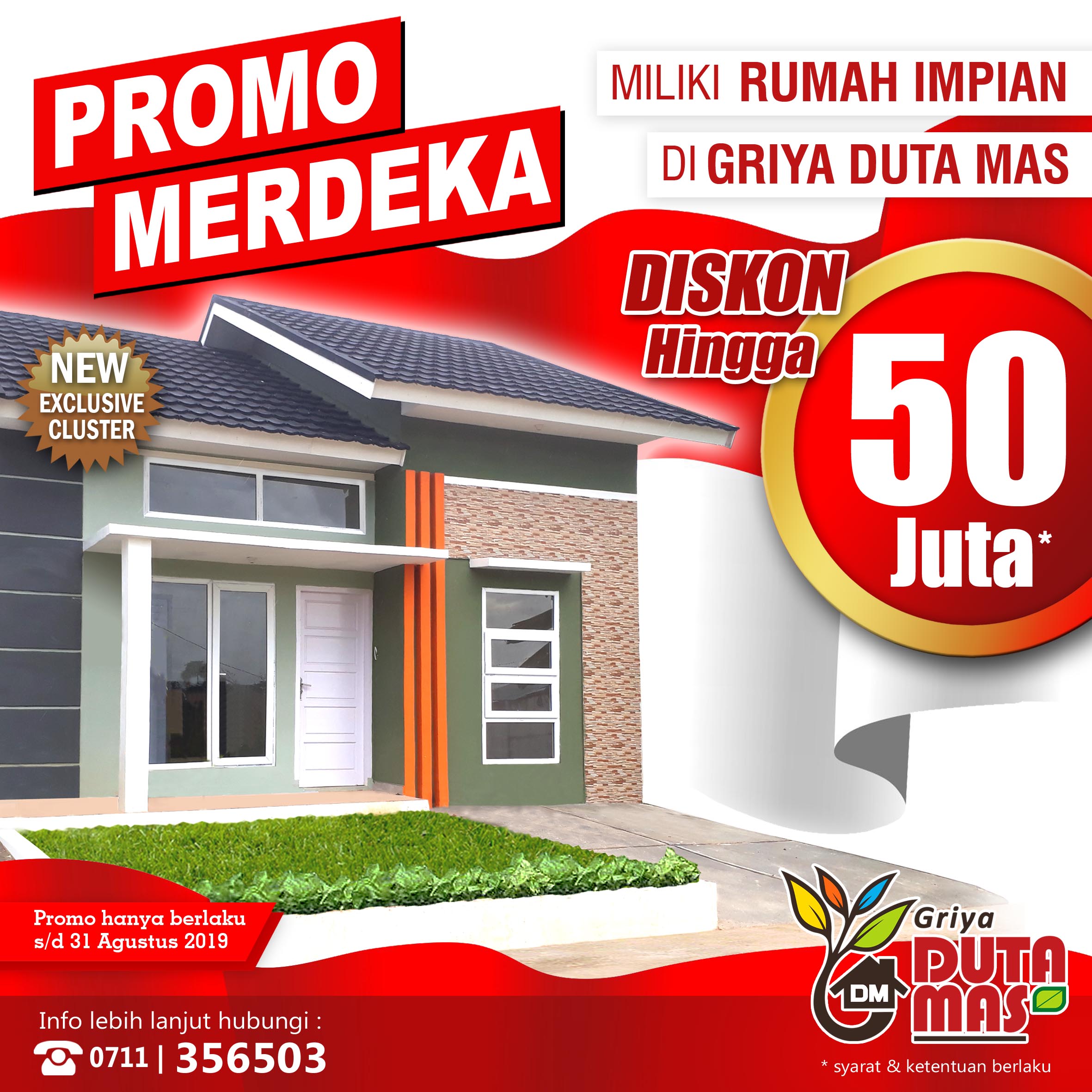 Dapatkan potongan harga hingga 50 Juta* dan miliki rumah impian Anda di Griya Duta Mas. Penawaran Terbatas.. Segera kunjungi lokasi kami atau hubungi marketing kami untuk mendapatkan penawaran menarik ini dalam rangka HUT Republik Indonesia ke 74 th. *syarat & ketentuan berlaku....Selengkapnya
