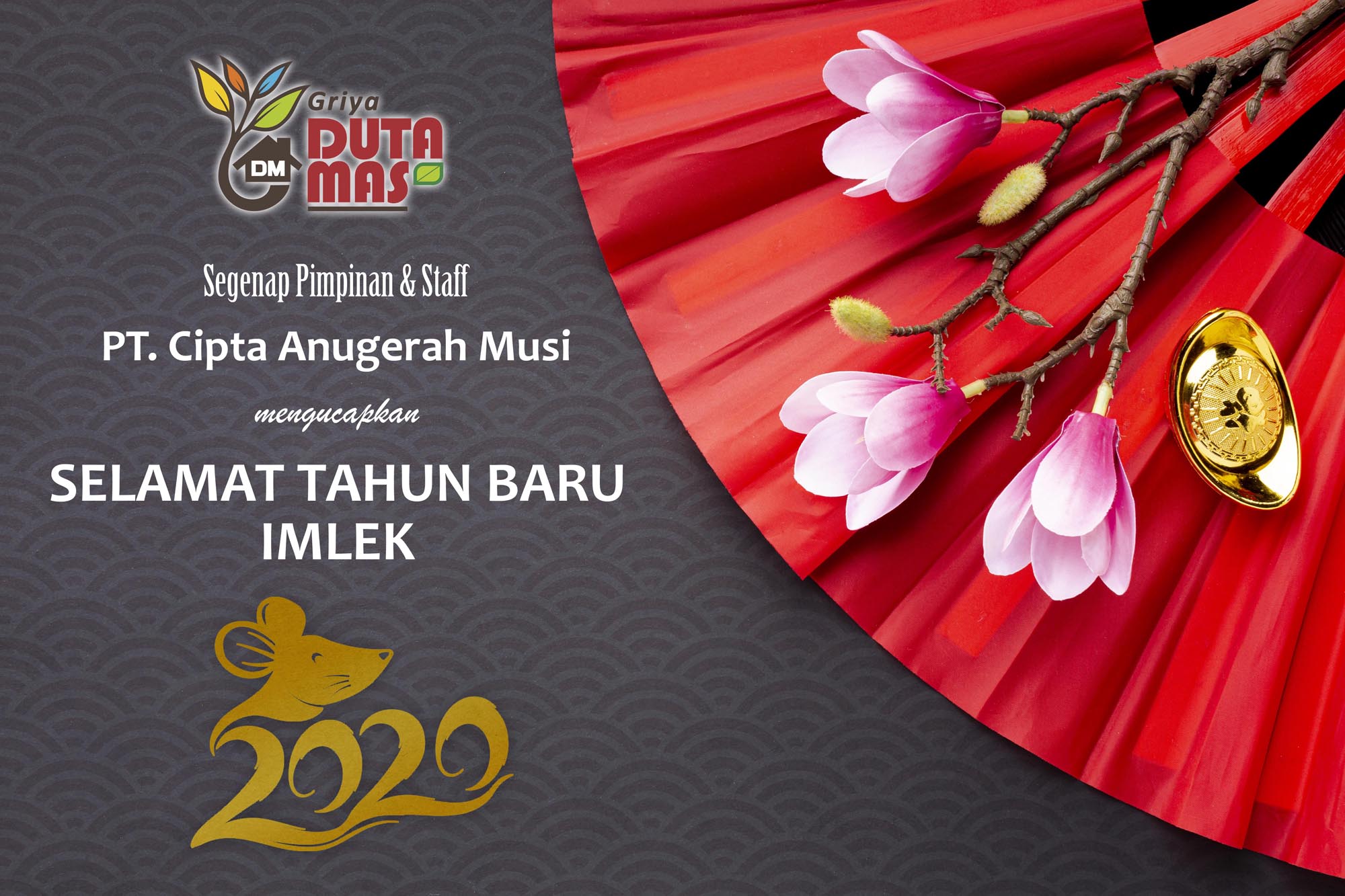 Segenap Pimpinan & Staf PT. CIpta Anugerah Musi mengucapkan Selamat Tahun Baru Imlek 2020 "GONG FI FA CHAI"...Selengkapnya